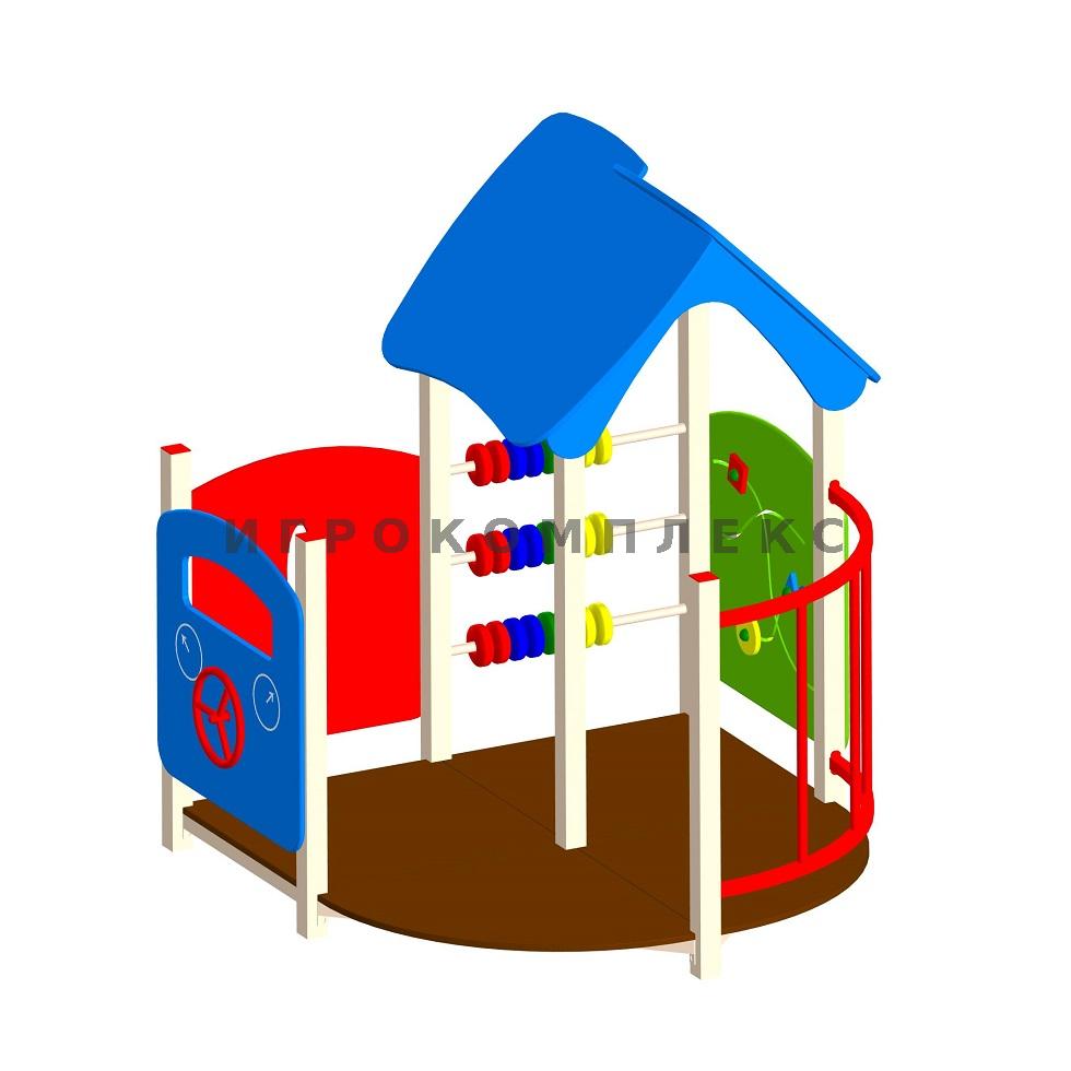 Детский домик Д-1.6 с обучающими панелями используется на детской площадке.