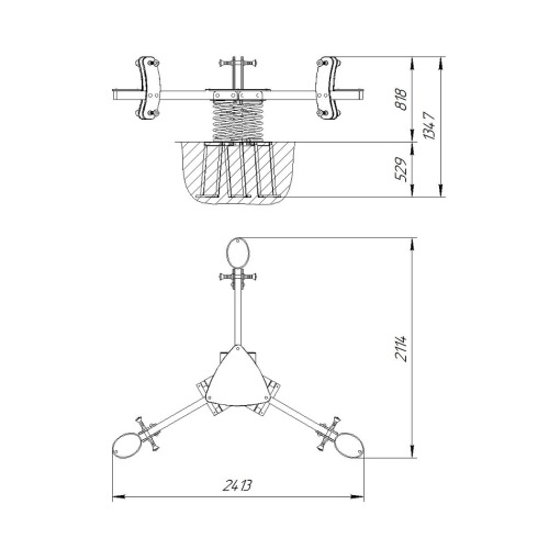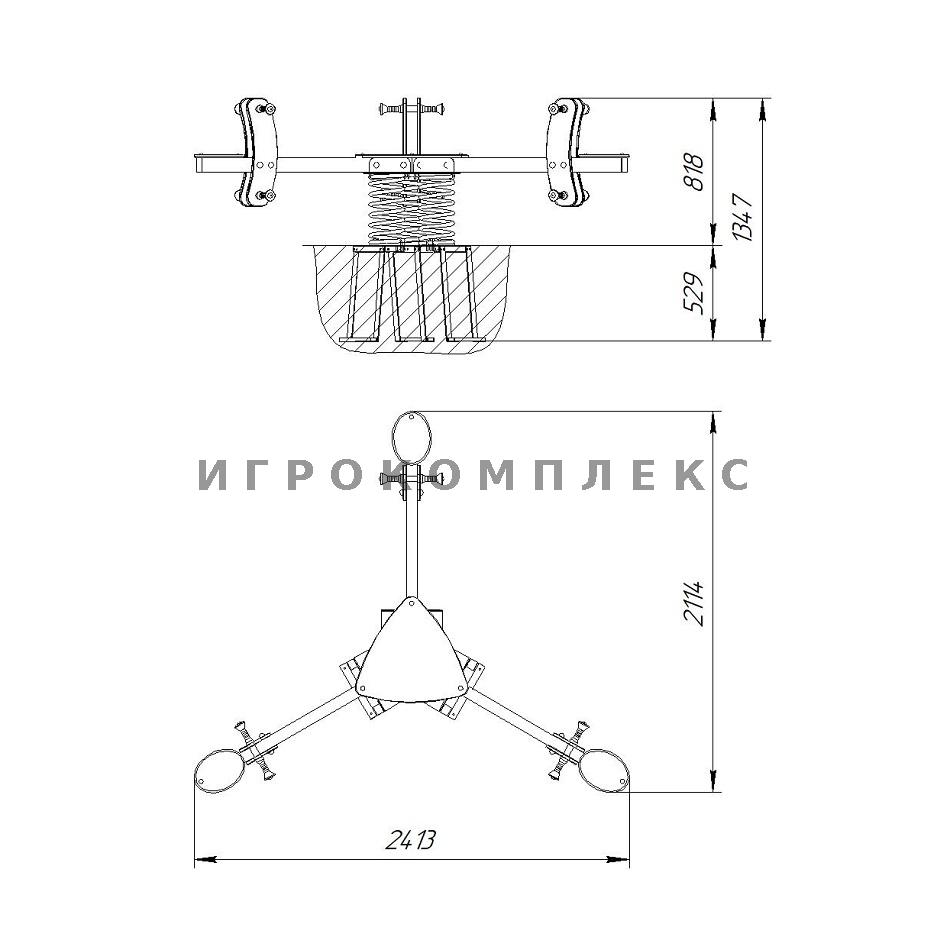Качалка на пружине КП-6.1 Тройной балансир "Озорник" применяется на детской игровой площадке.