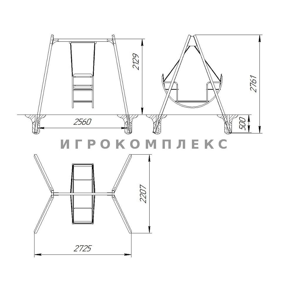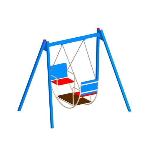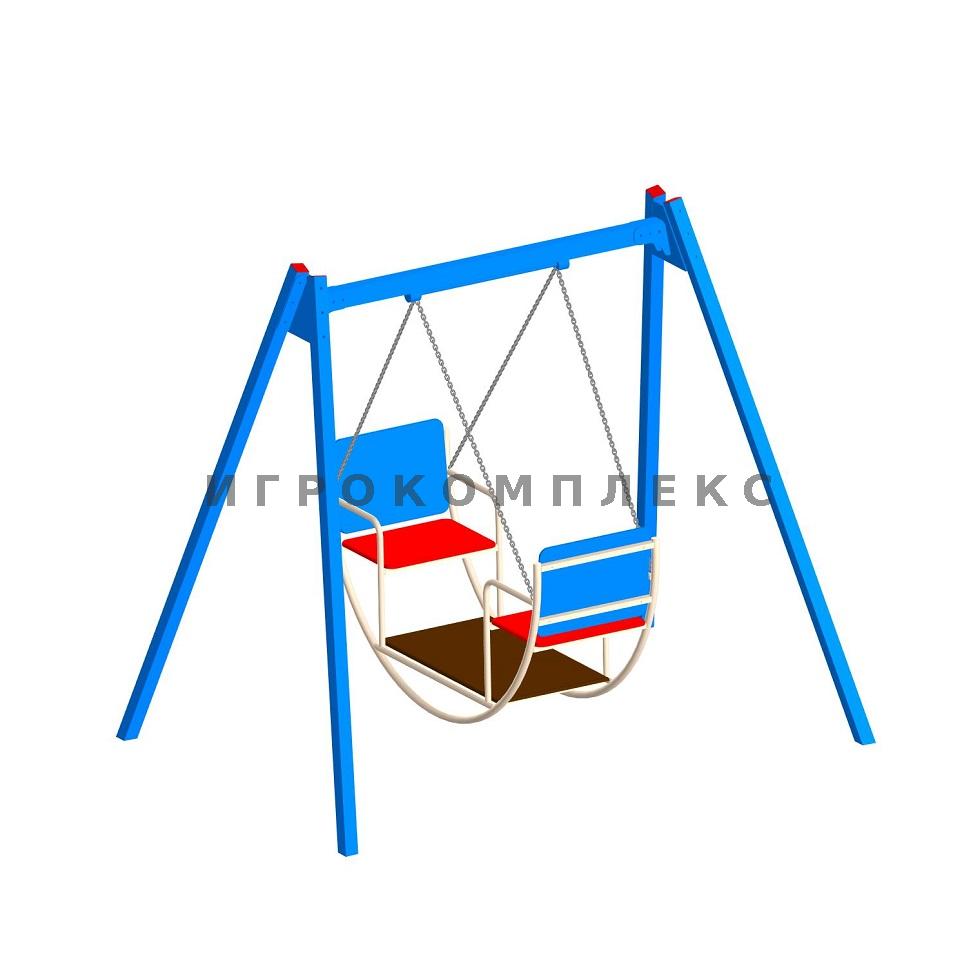 Детские качели К-1.4-с6 с большим подвесом "Лодочка" используются на детской площадке.