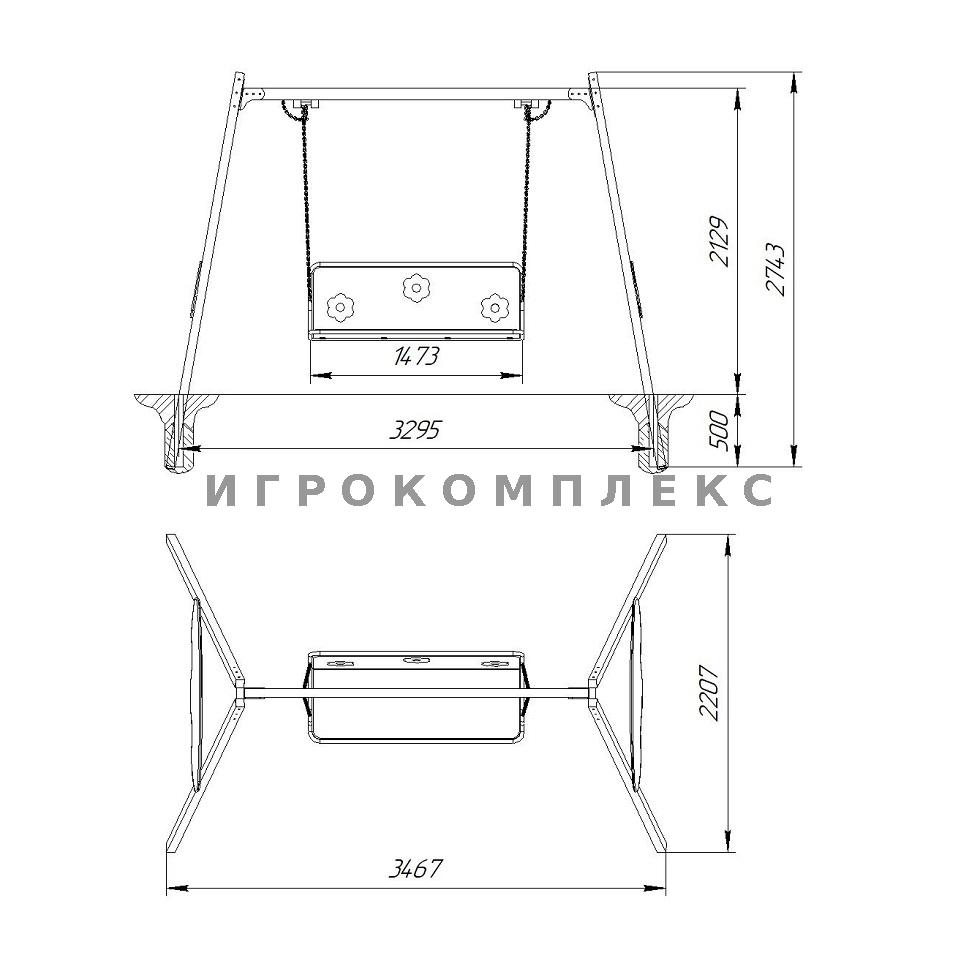 Качели К-1.5-с3д1 с большим сиденьем "подвесной диван" высотой 2,1м используется на детской площадке и территориях отдыха.