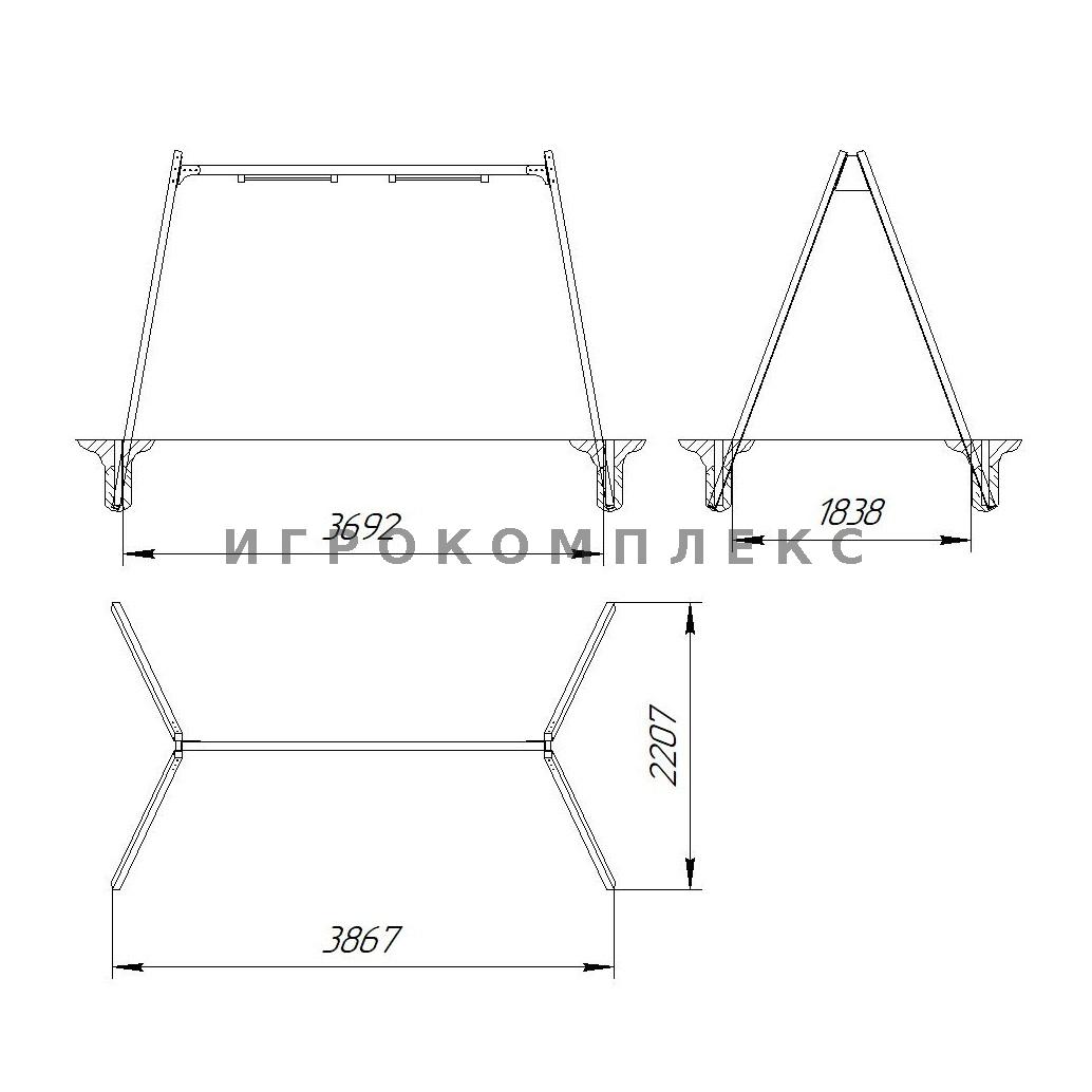 Материалы: металл 60х60, 60х80, подшипниковый узел, оцинкованная мет. цепь, сиденья, крепеж с защитными заглушками.