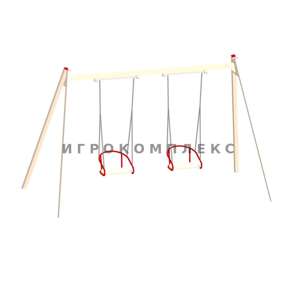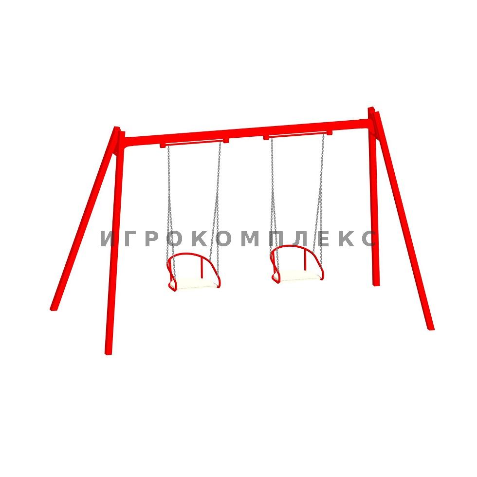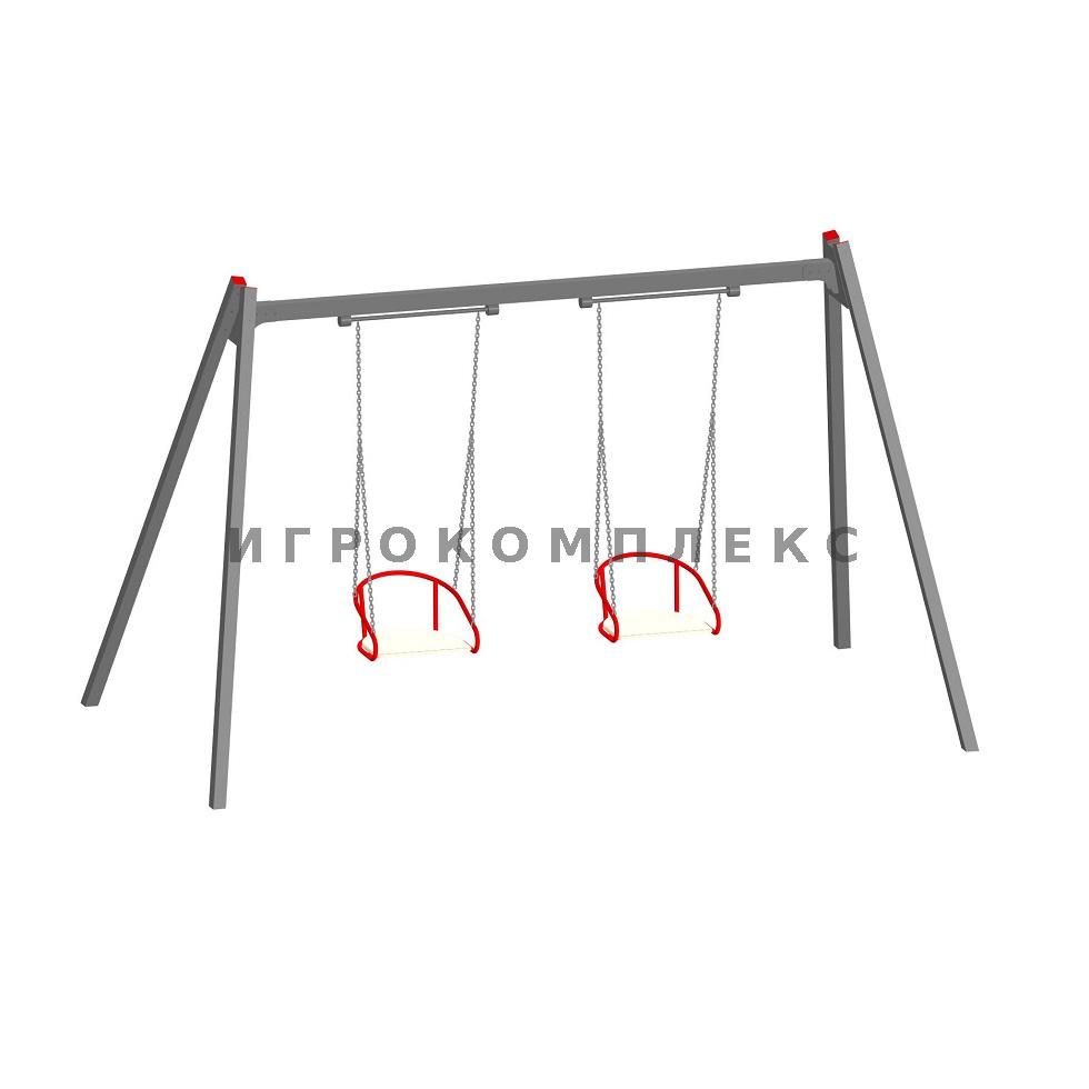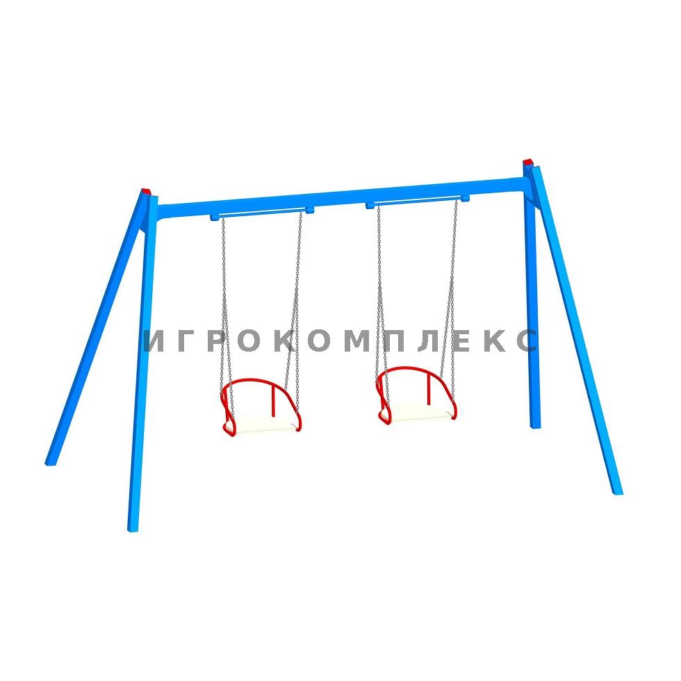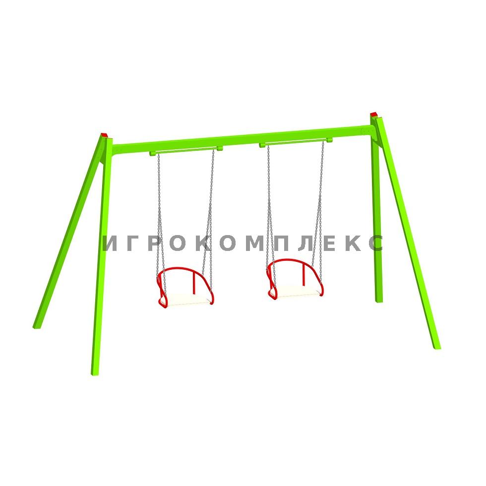 Качели детские двойные К-2.6-п1п1 высотой 2,1м используются на детской площадке.