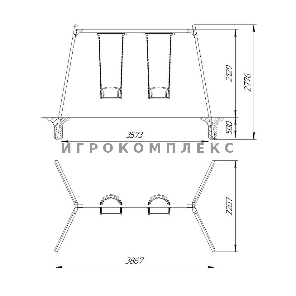 Материалы: металл 60х60, 60х80, подшипниковый узел, оцинкованная мет. цепь, сиденья, крепеж с защитными заглушками.