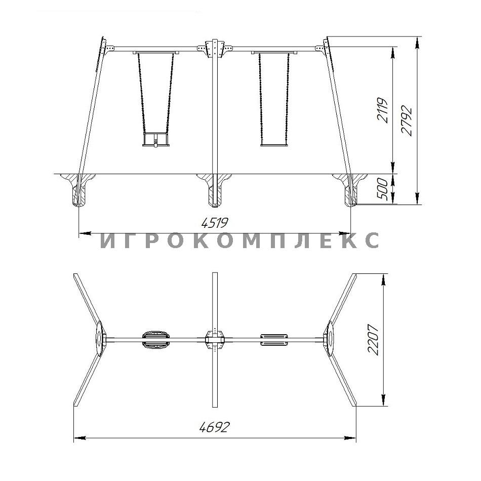 Материалы: металл 60х60, 60х80, подшипниковый узел, оцинкованная мет. цепь, сиденья, крепеж с защитными заглушками.