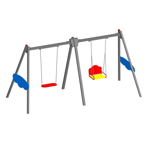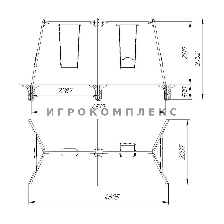 Материалы: металл 60х60, 60х80, подшипниковый узел, оцинкованная мет. цепь, сиденья, крепеж с защитными заглушками.