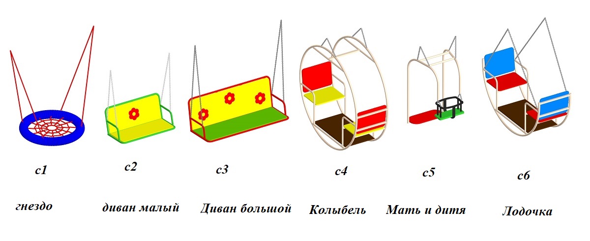 Качели детские К-3.5-п1п1п4 высота 2,1м комбинированные с 3 подвесами используются на детской площадке.