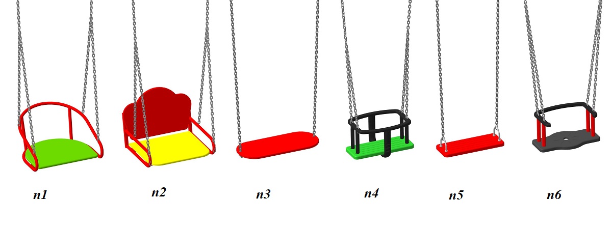 Качели детские К-3.5-п3п3п3 высота 2,1м с сиденьями без спинки используются на детской площадке.