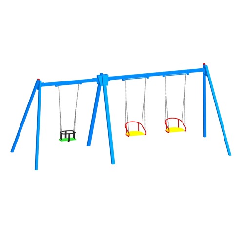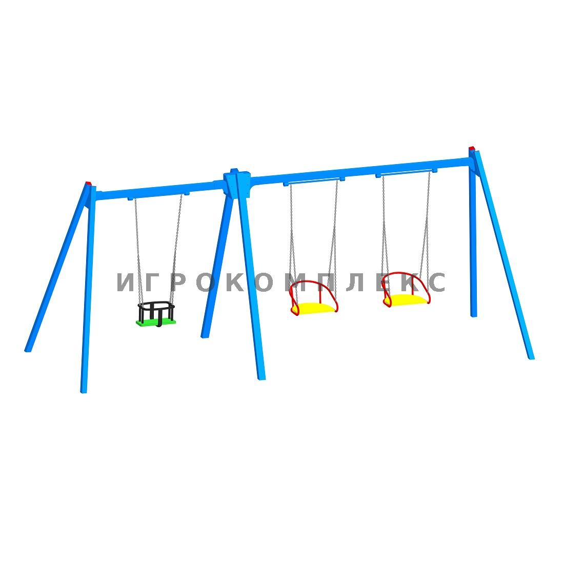 Качели детские К-3.5-п1п1п4 высота 2,1м комбинированные с 3 подвесами используются на детской площадке.