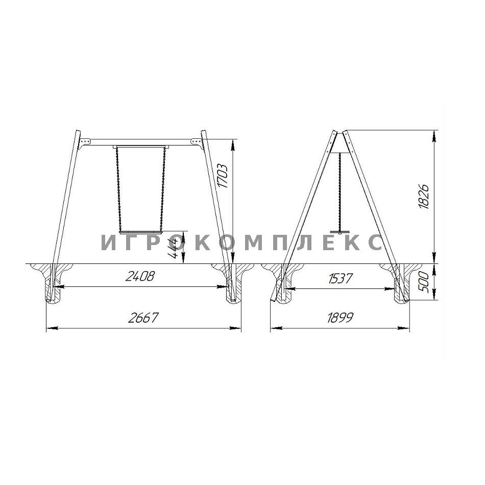 Качели детские одинарные К-1.1-п3 высотой 1,7м используются на детской площадке.