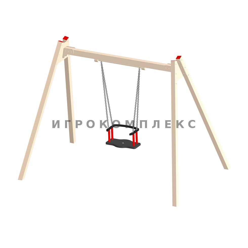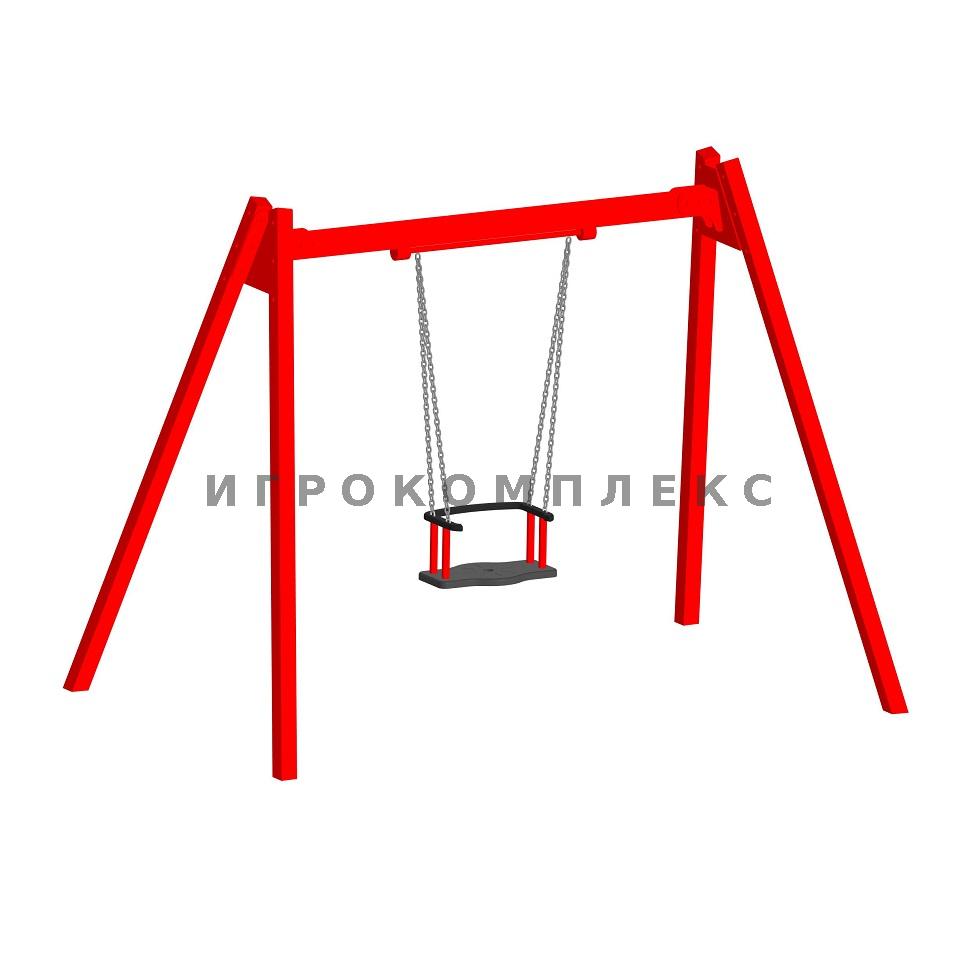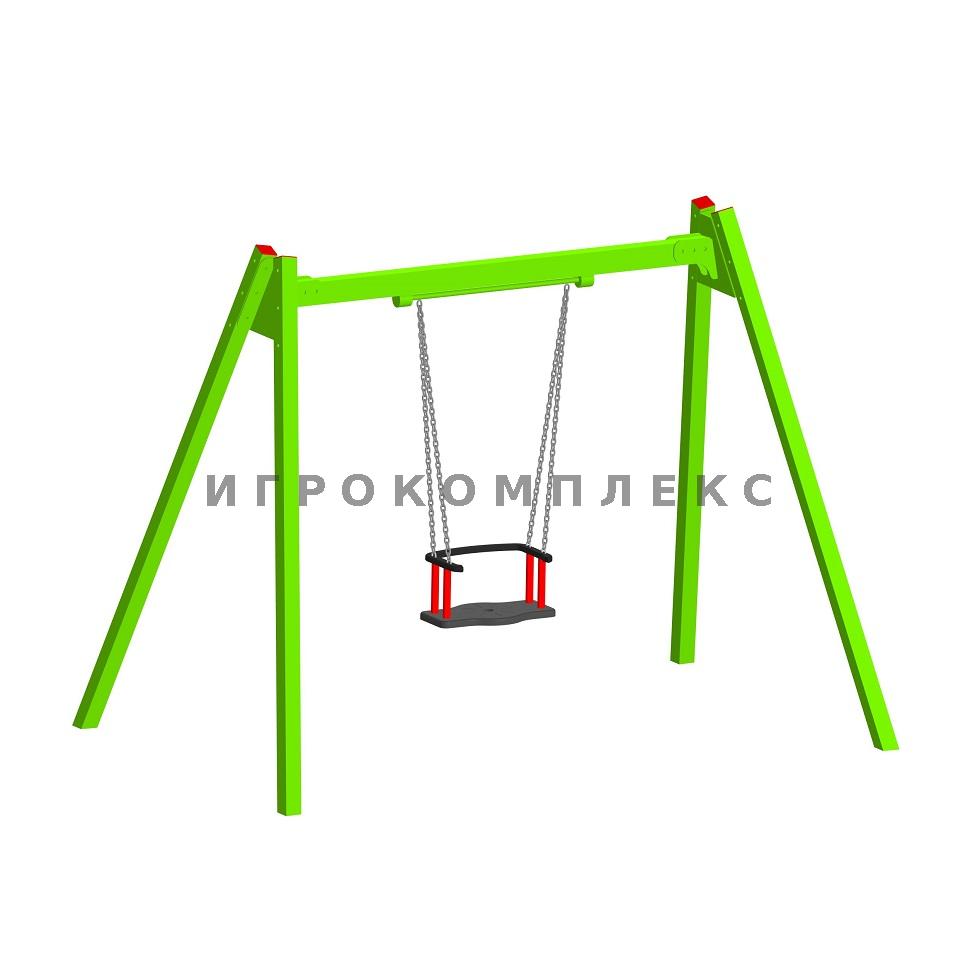Качели детские одинарные К-1.1-п6 с прорезиненным сиденьем со спинкой высотой 1,7м используются на детской площадке.