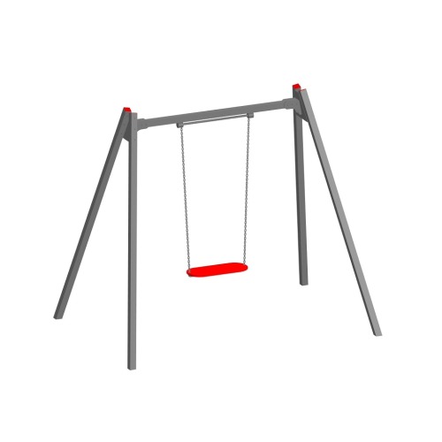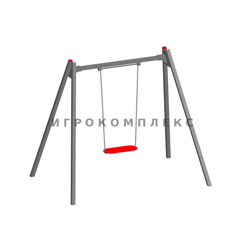 Качели детские одинарные К-1.2-п3 с сиденьем без спинки высотой 2,1м используются на детской площадке.