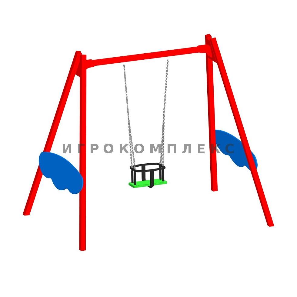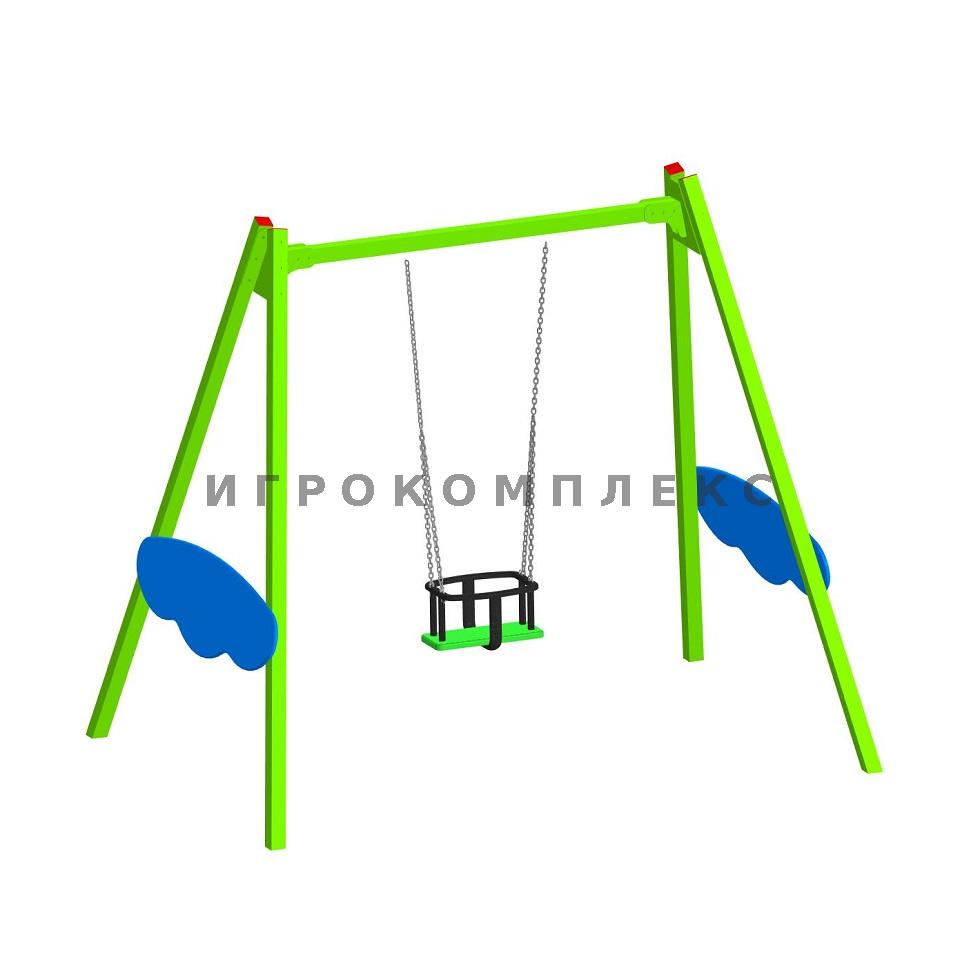 Качели детские одинарные К-1.2-п4д1 с сиденьем люлька высотой 2,1м используются на детской площадке.
