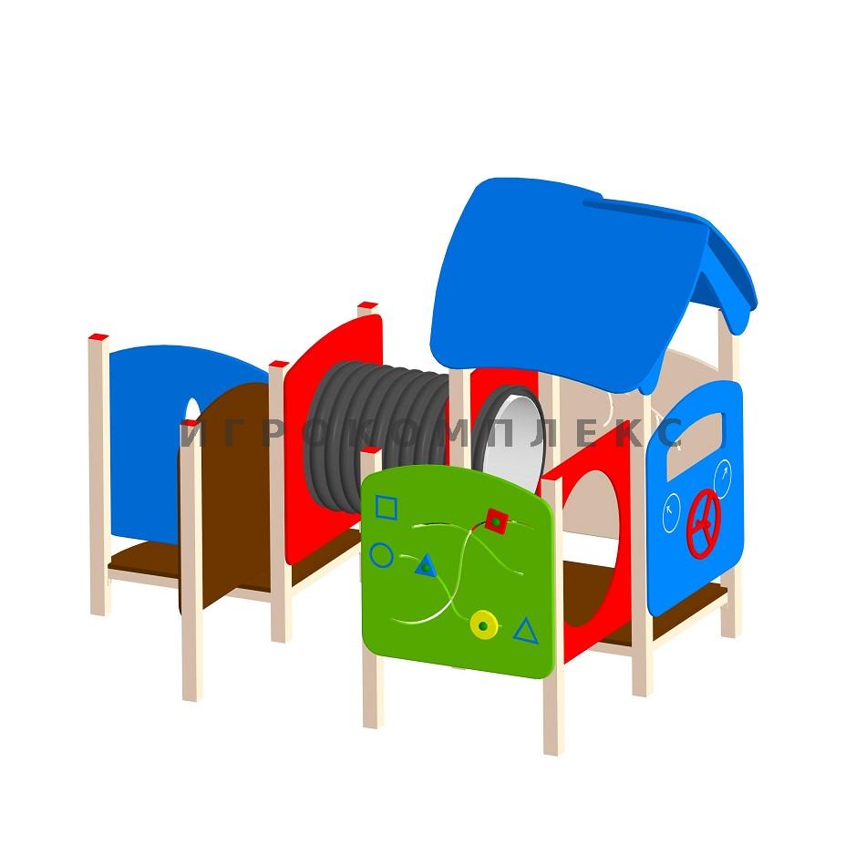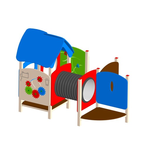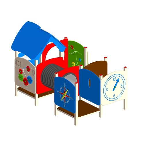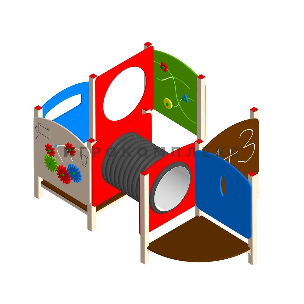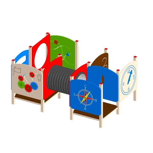 Игровой лабиринт ЛБ-1.3 с обучающими панелями используется на детской площадке.