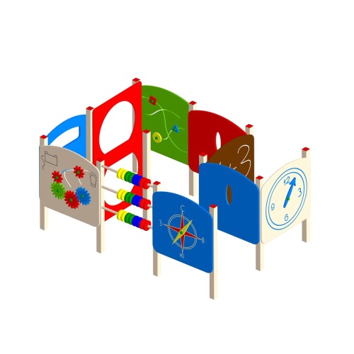 Игровой лабиринт ЛБ-1.1 с обучающими панелями используется на детской площадке.