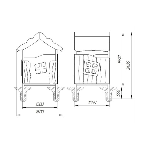 Детский домик Д-2.6 используется на детской площадке. Представляет собой домик под двускатной крышей, внутри две скамеечки.