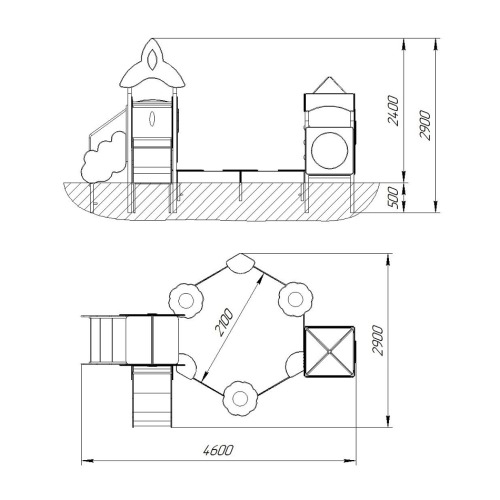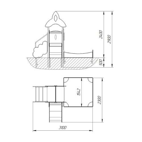 Высота ската горки 0,9м