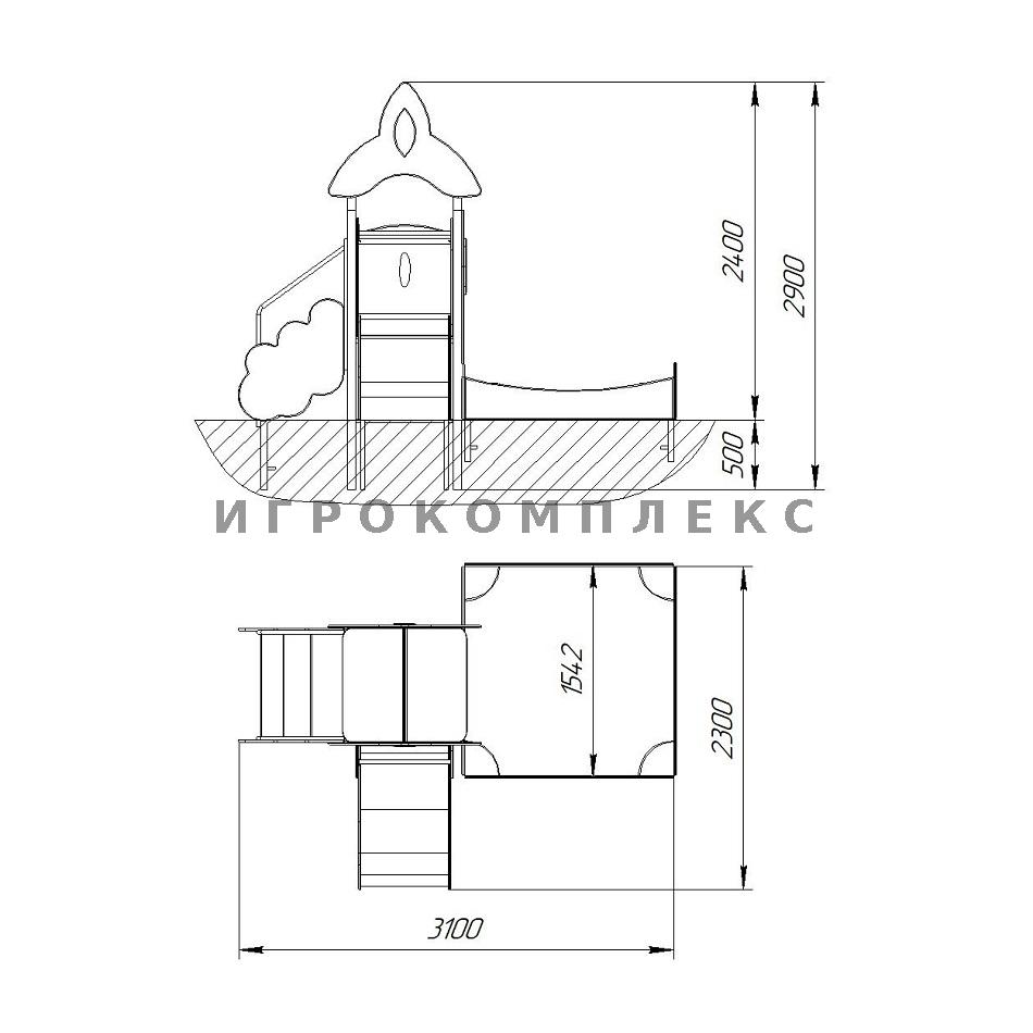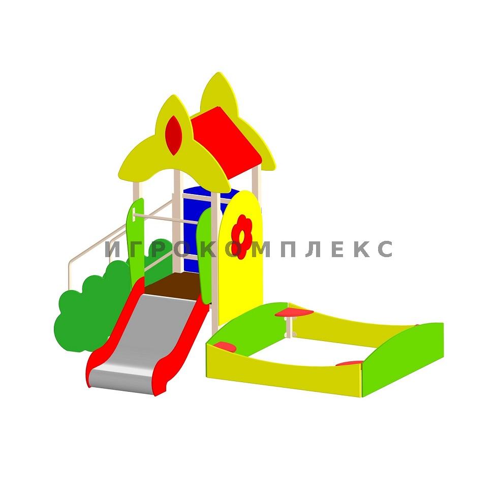 Песочный дворик ПД-3.5 с горкой высотой 0,6м используется на детской игровой площадке.
