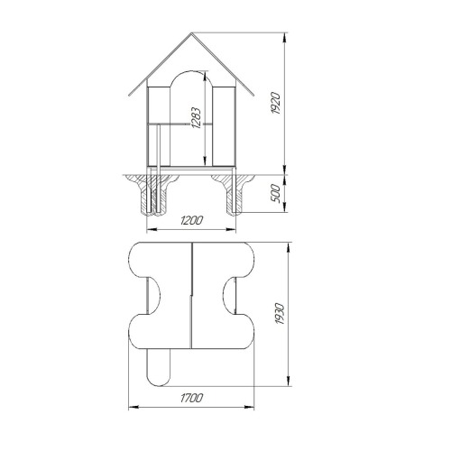Детский домик Д-2.7 используется на детской площадке. Представляет собой домик под двускатной крышей, внутри две скамеечки.