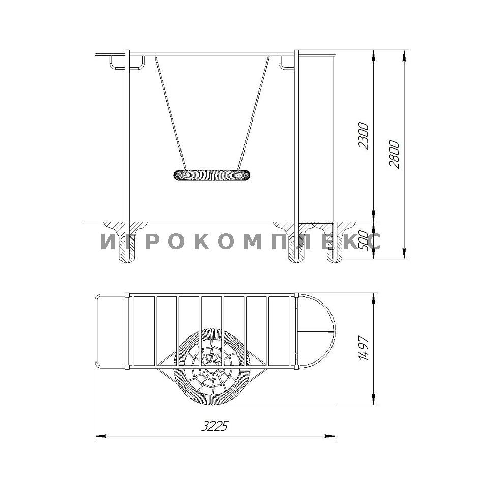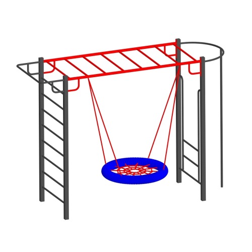 В состав входит: шведская стенка с турником, рукоход с подвесом гнездо, шест для подтягивания.