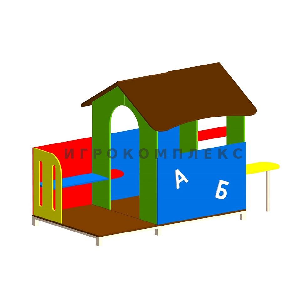 Детский домик Д-2.2 используется на детской площадке. Представляет собой домик под двускатной крышей, внутри две скамеечки и столик, без пола.