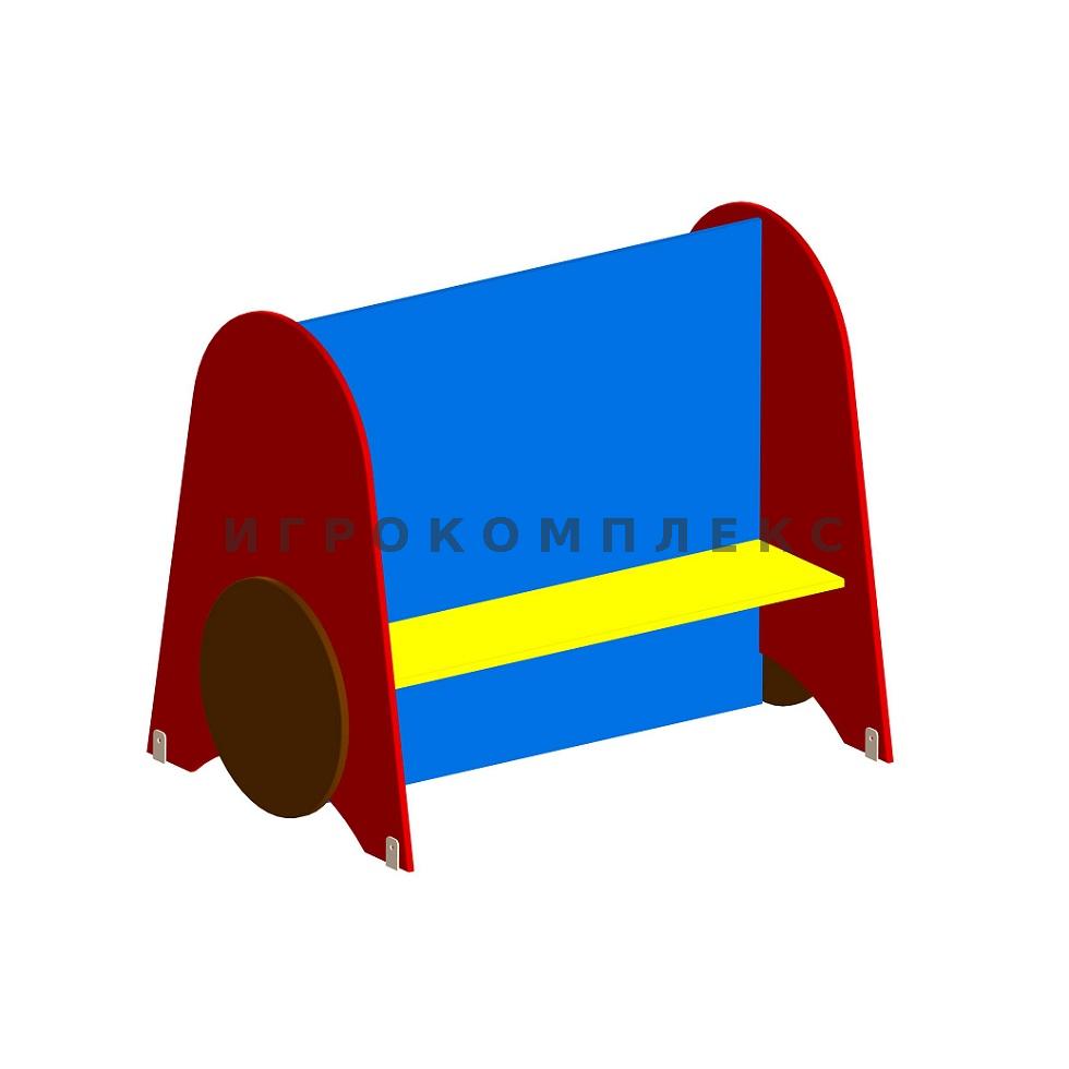 Скамья детская "Вагончик Мини Паровоза" со спинкой используется на детской площадке и придомовой территории.