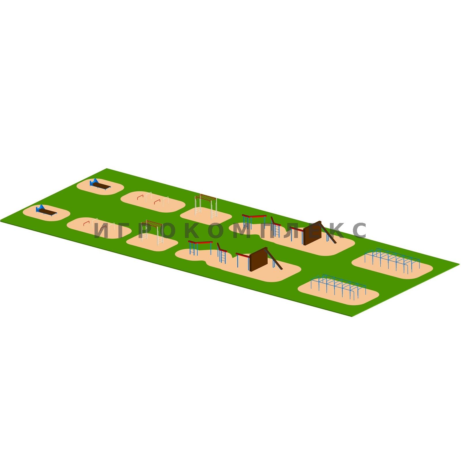 Соревновательная полоса препятствий 2 для ГТО используется на спортивной площадке.